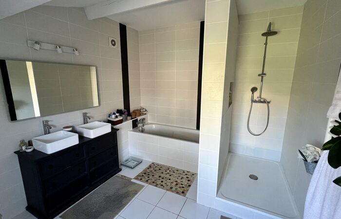 Proche toutes commodités à pied, coup de coeur assuré pour cet ensemble immobilier en pierre édifié sur un terrain sans vis-à-vis de 734m2. Il se compose d'une maison de 186m2 habitables aux beaux volumes alliant l'ancien et le moderne, et d'un T2 indépendant de 43m2 avec jardinet loué meublé 479€ .