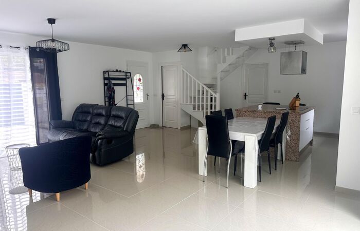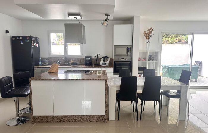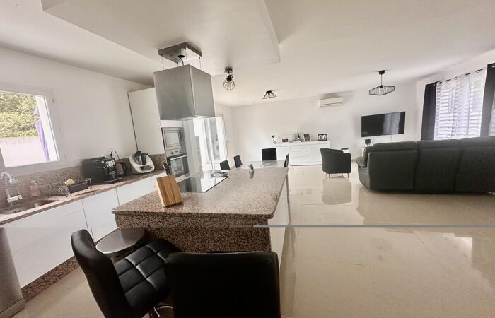 Au rez-de-chaussée se trouve une belle pièce de vie de 50 m2 avec cuisine ouverte, le tout donnant sur terrasse exposée plein sud, une suite parentale avec dressing et salle d'eau.