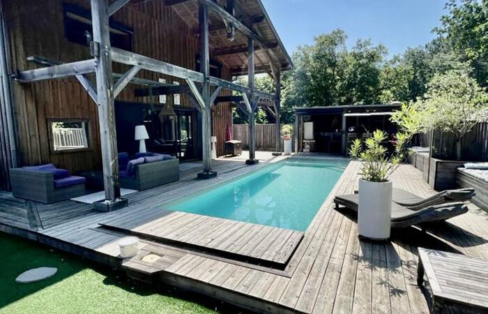 À l’extérieur, profitez d’une vaste terrasse couverte de 30 m² donnant sur une magnifique piscine 10 x 3.