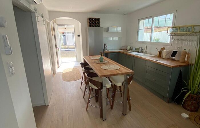 - Cuisine entièrement aménagée et équipée avec électroménager neuf
