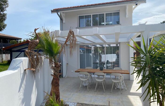À seulement 50 mètres du bassin, découvrez cette superbe maison neuve aux prestations haut de gamme, construite sous garanties décennales et conforme aux dernières normes PPRI.