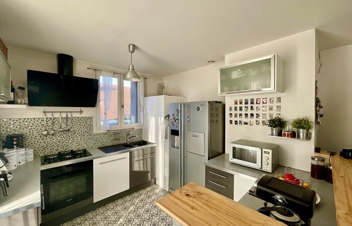 Composé de 2 niveaux (sans ascenseur) il propose au premier niveau une grande pièce de vie de près de 30m2 comprenant une cuisine équipée ouvrant sur le séjour, le tout complété par une suite parentale disposant d'un grand dressing et d'une salle d'eau attenante. A ce niveau vous pourrez profiter d'une confortable terrasse de 70 m2 et d'un balcon ; au second niveau, 3 chambres et une salle de bains.