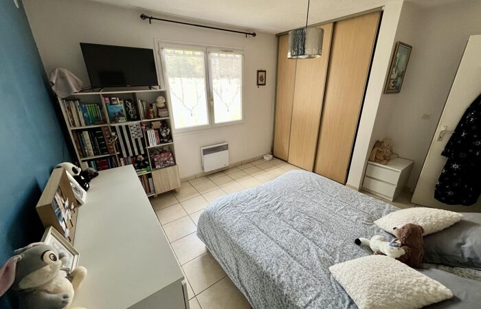 Elle se compose d'une entrée avec placard, d'une pièce de vie avec cuisine ouverte donnant sur terrasse exposée sud-ouest , d'un cellier attenant à la cuisine, de 2 belles chambres avec placards, un WC séparé et d'une salle d'eau avec WC.