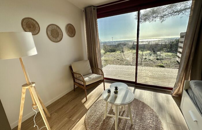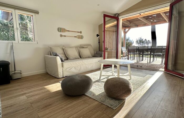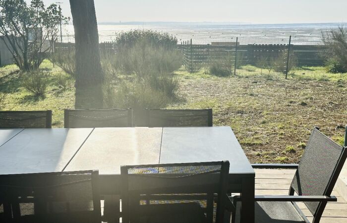 En première ligne, cet agréable plain pied avec son jardin privatif et accés privé à la plage vous dévoile un panorama unique sur le Bassin d'Arcachon.