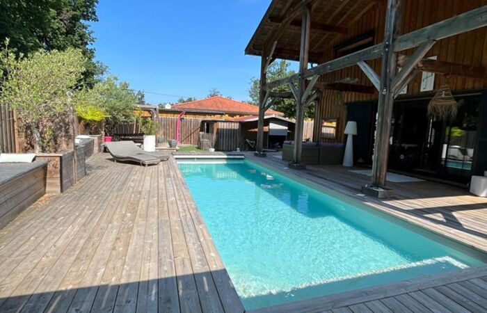 À l’extérieur, profitez d’une vaste terrasse couverte de 30 m² donnant sur une magnifique piscine 10 x 3.
